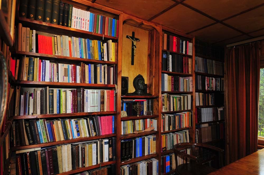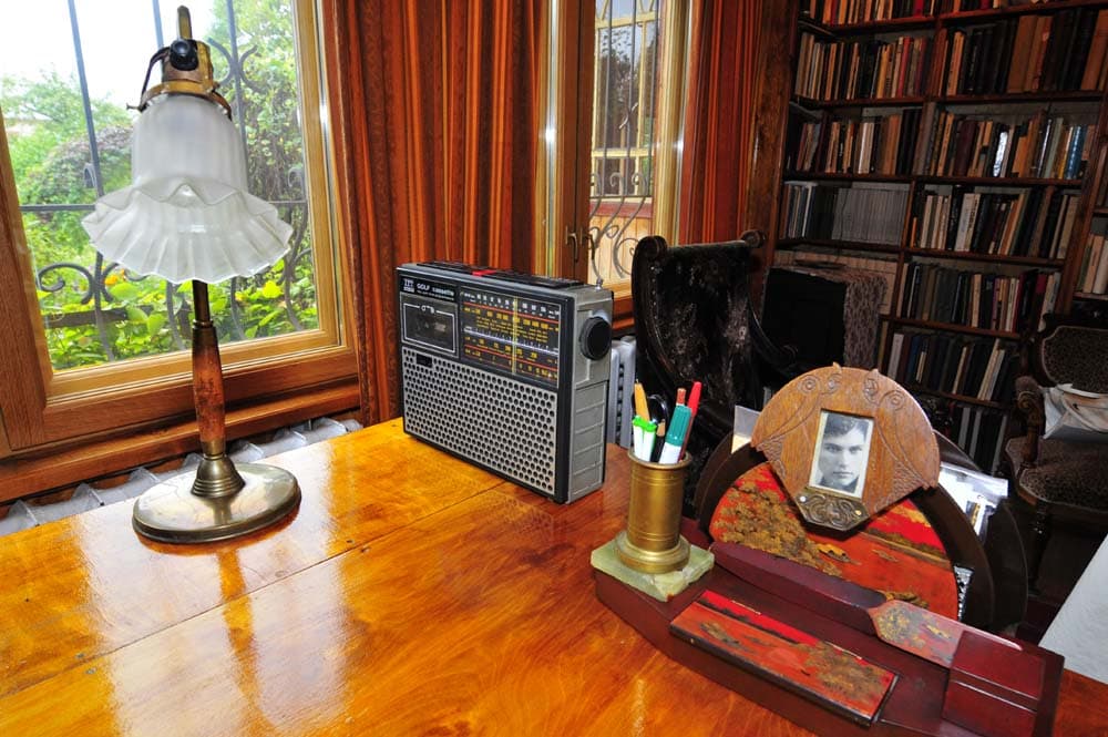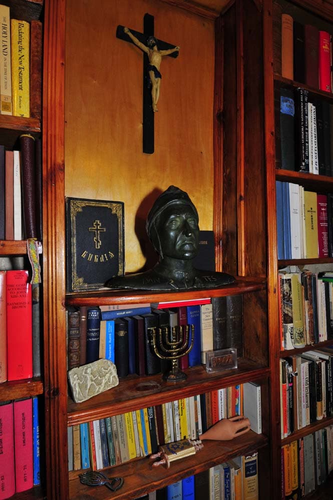Под Распятием стоит Библия и скульптурный портрет Данте. А в письменном приборе - фотография Наталии Федоровны, матушки о. Александра.